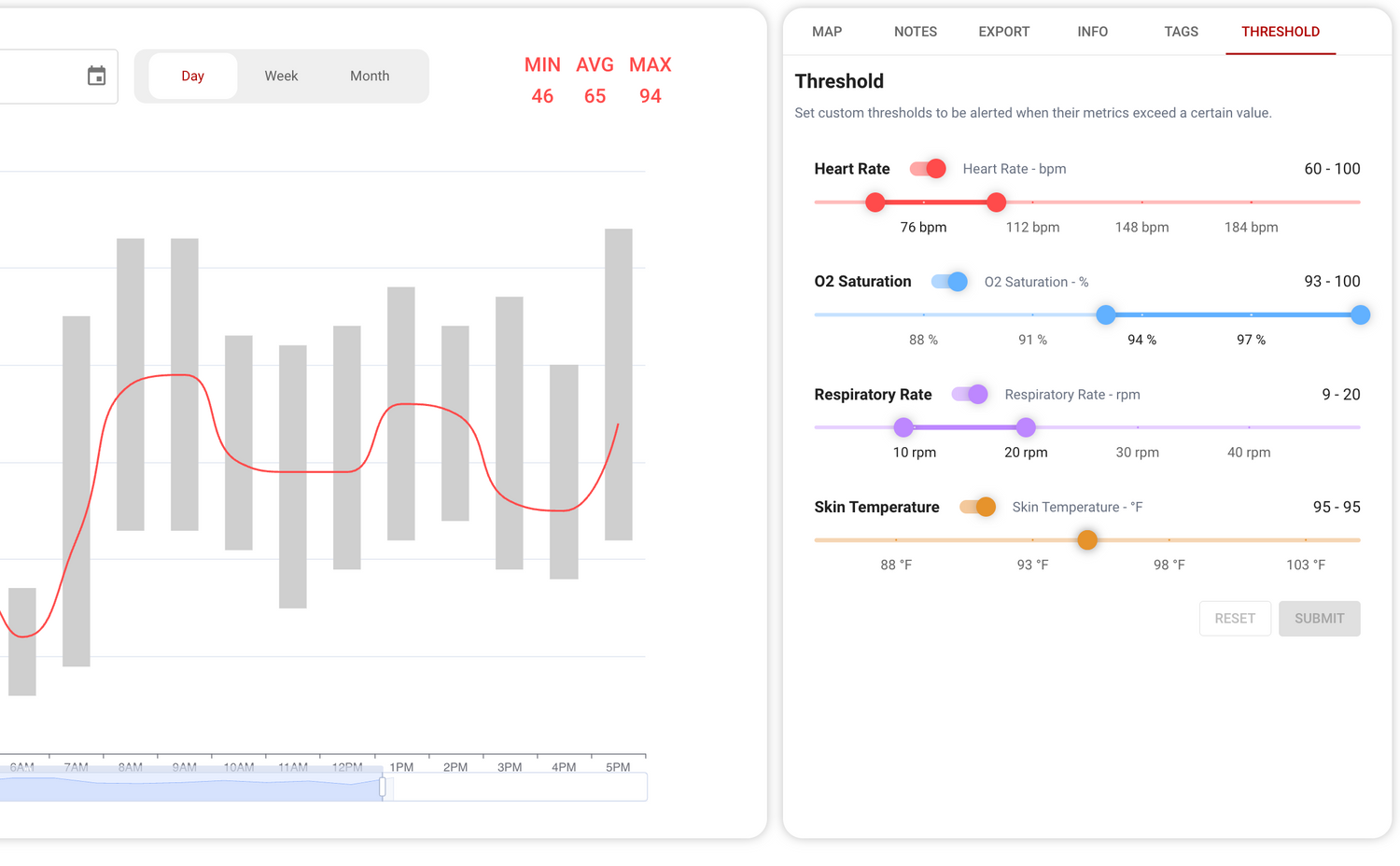 Set individualized metric limits based on each user's clinical profile. Personalized thresholds reduce false alarms and ensure your team intervenes at the right time.